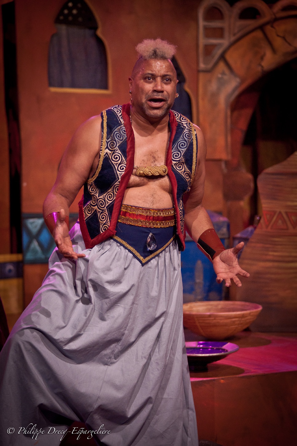 Dans le dédale du palais, Juan Marquez Garcia est un formidable Soliman le Magnifique, qui se passionne plus pour son harem que pour les affaires de son royaume ou de sa favorite épouse qui n’a de favorite que le nom. Christelle Delbrouck est cette excellente « femme-de-la-haute » qui, pour ne pas tomber trop bas, multiplie les coups bas… manqués ! Tout cela pour le plus grand bonheur du grand Vizir Althazar (John-John Mossoux) qui a un œil sur le royaume…mais Ali, le voleur -et fils de la favorite !- a, lui, un œil sur une princesse blasée : ces deux-là (David Notebaert et Sara Amari) courent dans tous les sens et s’entremêlent les pinceaux dans les couloirs du temps, perturbés par les sorts abracadabrants, la magie fumeuse et les malédictions de bric et de broc du génie implorant (Bruce Elison). Et dans toute cette agitation aux allures de kermesse aux loukoums, Xa, en soldat malin qu’il croit être, fait ce qu’il peut pour garder le minaret au milieu du palais…