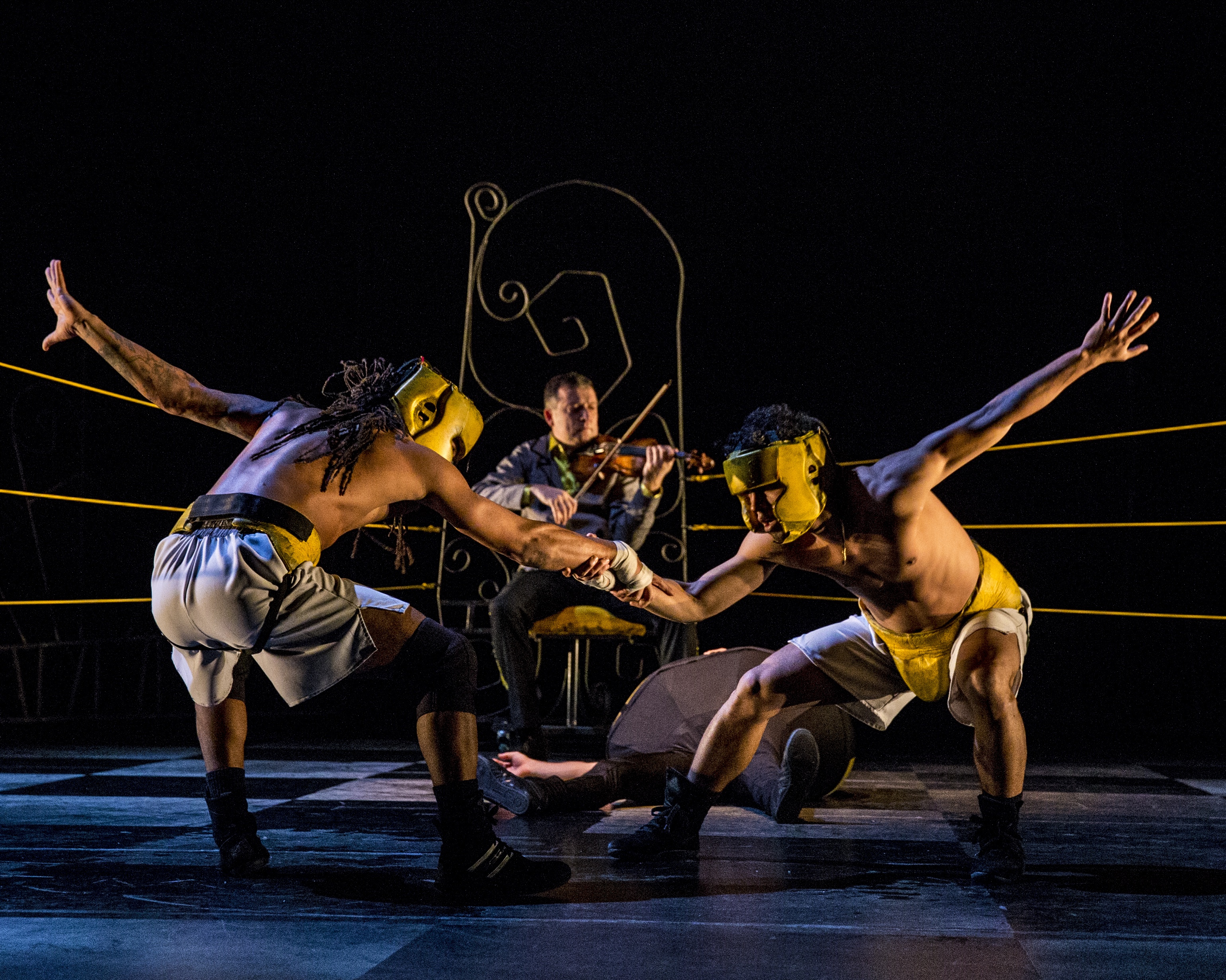 La boxe, c’est déjà de la danse et le chorégraphe aime les contrastes. Il y associe le quatuor Debussy et neuf danseurs cariocas à l’énergie absolue. Sur une scène transformée en ring de boxe, les quatre musiciens suivent les mouvements des danseurs. Dans un bel ensemble, les cordes des violons apprivoisent les corps, les figures de hip hop domptent les notes. D’une vitalité contagieuse, la chorégraphie joue de façon poétique et drôle avec les jeux de jambes, crochets, esquives… Un spectacle dont vous ressortirez k.o. d’admiration.