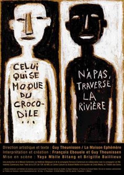 Lorsque deux hommes de théâtre se rencontrent, l’un camerounais d’une trentaine d’années, François Ebouele, et l’autre belge de plus de dix ans son aîné, Guy Theunissen, chacun arrive avec ses valises et son regard, son passé et ses clichés, ses espérances et ses combats. « Celui qui se moque du crocodile, n’a pas traversé la rivière », c’est la belle histoire d’une amitié, mise en scène par Brigitte Baillieux et Yaya Mbile Bitang.