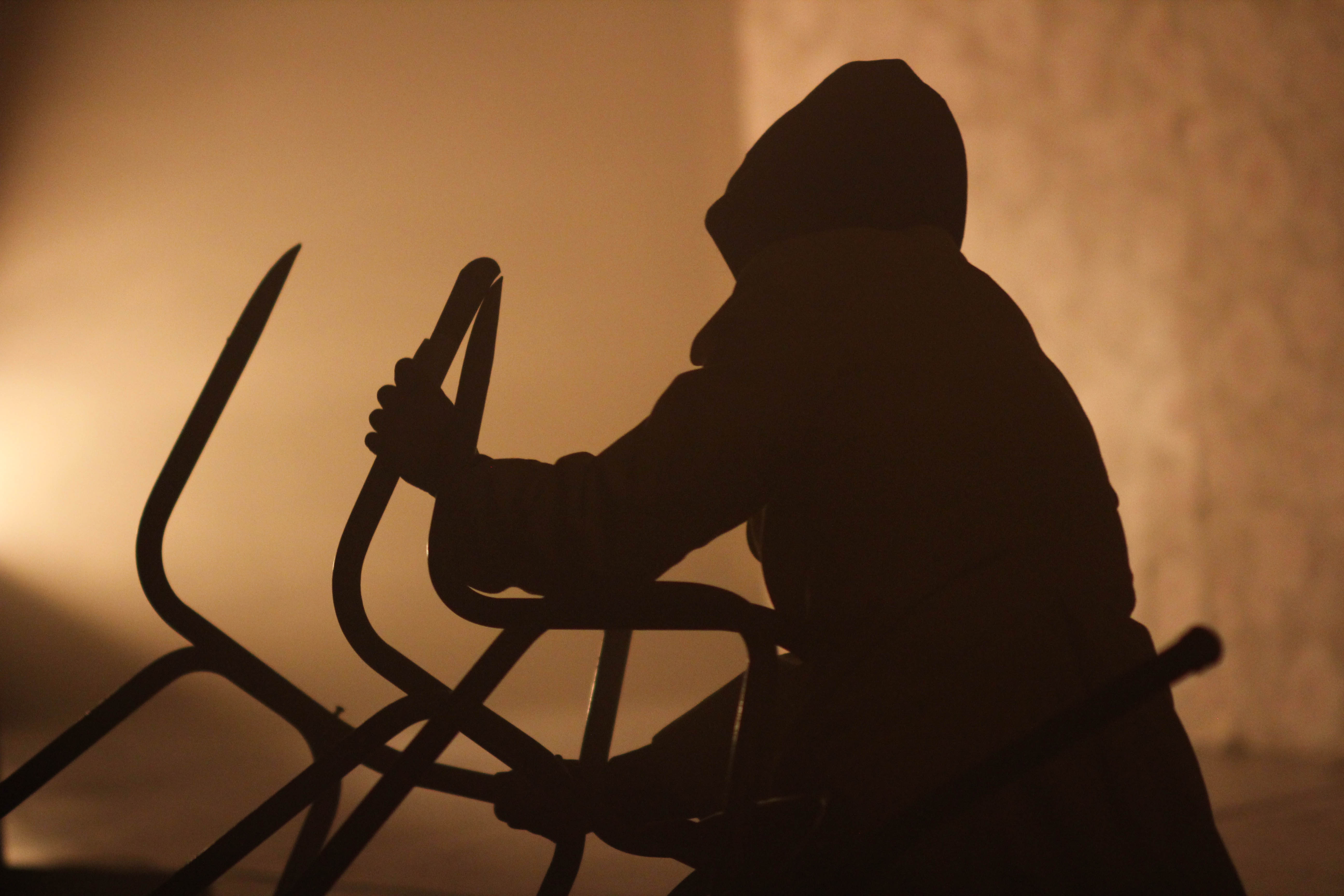 Nicolas Mouzet Tagawa part des contraintes posées par l’espace théâtral pour les bousculer. Une série de couloirs, de passages et de cadres constitue le dispositif scénique qui est mis en mouvement et chamboulé par les corps et les voix qui s’y meuvent. Les mots de Dostoïevski, de Pirandello ou d’Ossip Mandelstam s’y font entendre.