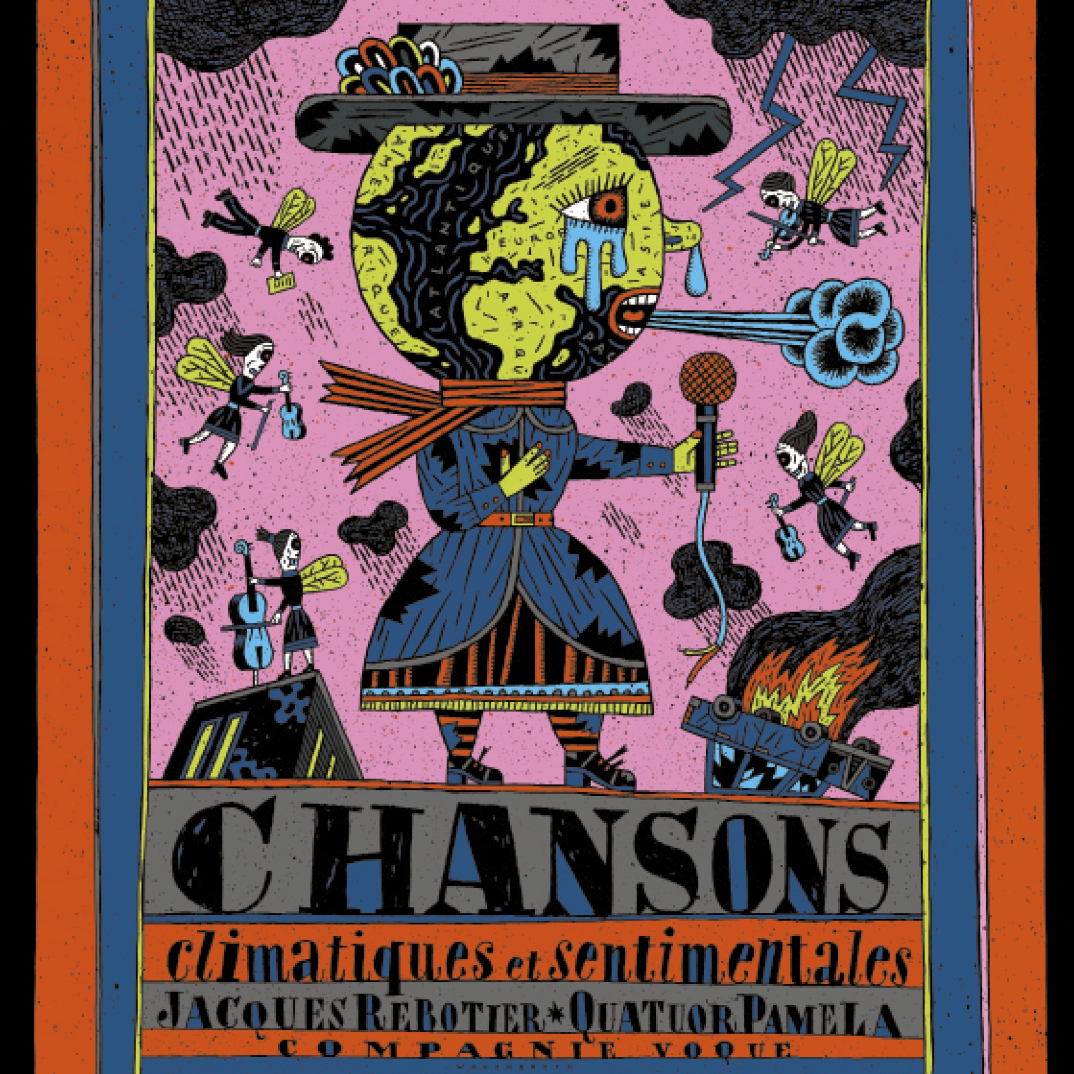 JACQUES REBOTIER (auteur, compositeur, interprète) / COMPAGNIE VOQUE / Avec Jacques Rebotier et le Quatuor Pamela : Anne Le Pape et Apolline Kirklar (violons, voix), Séverine Morfin (alto, effets, voix) et Anne Gouraud (contrebasse, voix).