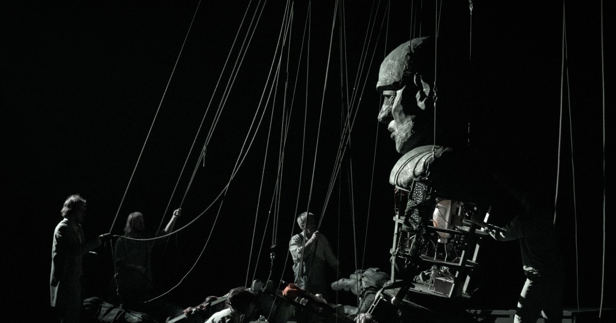 Michael Pietsch, le concepteur des marionnettes, a fourni un travail colossal avec une grande équipe de techniciens, plasticiens et menuisiers pour fabriquer un géant de bois d’environ 6 mètres de haut, qui trône sur le plateau (rappelant inévitablement la Saga des Géants de la compagnie Royal de Luxe) .