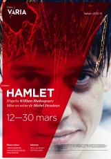 Dès le début du spectacle, cette ambiance de fin de soirée bien arrosée au rythme de musique disco en fond sonore, nous fait vite comprendre que le Hamlet de Dezoteux détonne avec celui de Shakespeare, à mesure que les personnages, au teint livide et aux yeux cernés de noir, révèlent des personnalités borderline. Aux côtés d’une Ophélie qui nous paraît bien loin de l’innocence avec ses allures de junkie et sa démarche lancinante (Fanny Marcq), d’une reine névrosée et parfois hystérique (Candy Saulnier) mais aussi d’un Polonius excentrique coiffé comme un savant fou (Blaise Ludik), tous les yeux sont rivés sur un Hamlet surprenant, interprété par le talentueux Karim Barras qui jongle avec la folie et la démesure comme un virtuose avec son instrument. L’acteur nous livre un Hamlet comme on ne l’a jamais vu ; cynique, désinvolte, provocateur. Pour renforcer la folie, il joue avec les ruptures de tons et d’énergie en passant sans cesse d’un extrême à un autre, d’un discours à un autre ou d’une émotion à une autre.