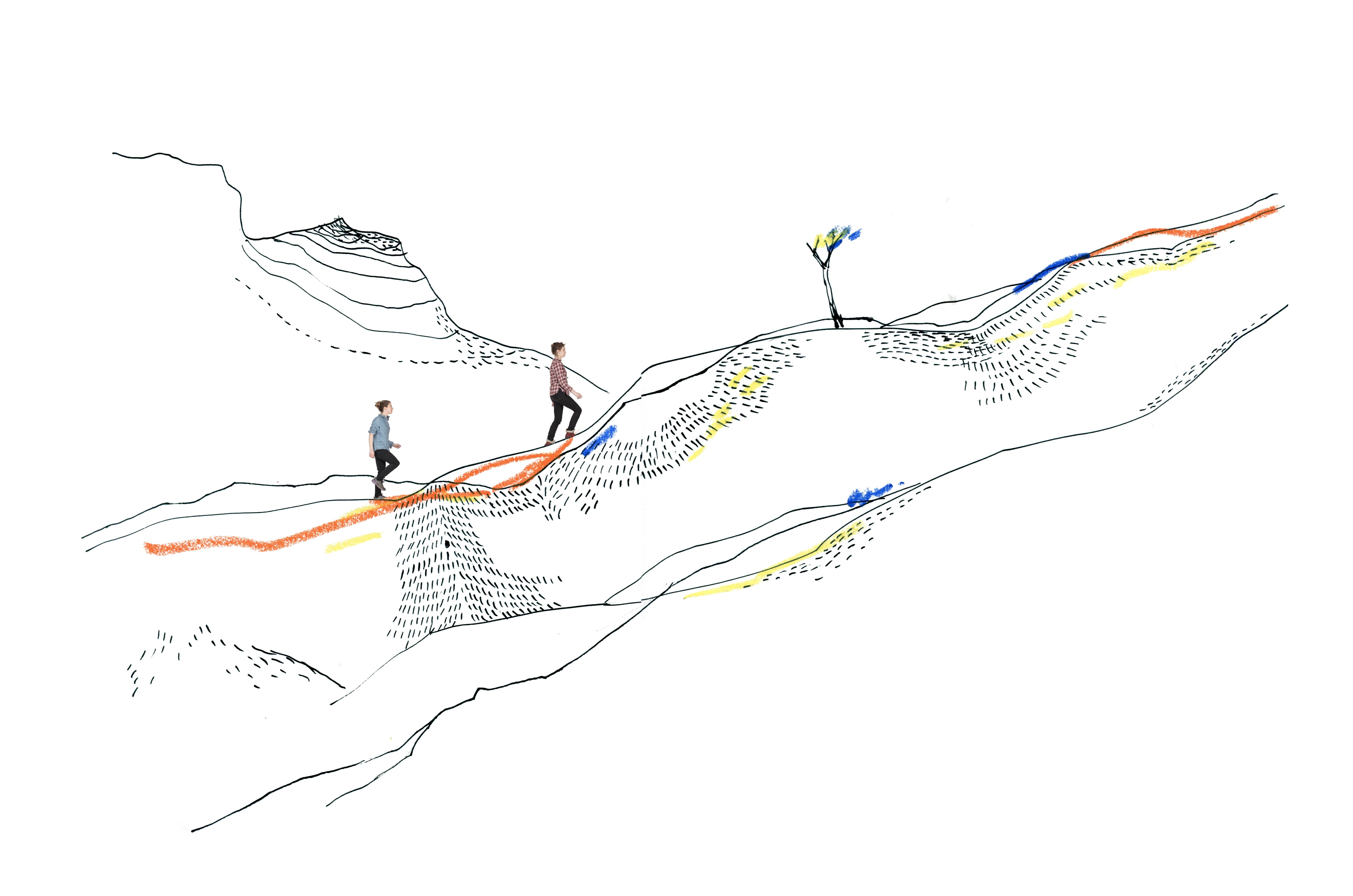 Dans La Montagne, Aline nous emmène dans son village, plus précisément dans le jardin collectif de Deux Acren. C’est là, sur ce lopin de terre où on cultivait encore les plantes médicinales il y a peu, qu’elle joue avec Sarah des morceaux de vie de celles et ceux qu’elles ont interviewés pendant un an. À travers ces rencontres, elles essayent de comprendre comment l’économie traverse nos vies, ce qu’elle nous donne et ce qu’elle nous retire. Parce qu’avant de signifier la bourse, la dette, les flux immatériels d’argent et de chiffre, la science économique désignait l’art de gérer le foyer. Sur le plateau, Wim les accompagne, dessinant en live le paysage montagneux de cette quête.