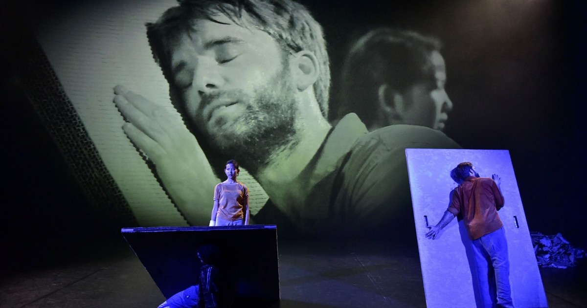 La danseuse singapourienne (Sara Tan) récite en anglais (la traduction s’affiche en français sur l’écran) les recommandations d’un guide de survie au XXIe siècle. Tous prennent position autour de grandes plaques disposées sur le sol, les déplacent comme des continents à la dérive ou des plaques tectoniques qui bougent, s’entrechoquent, se superposent. Ils se glissent sous ces surfaces mouvantes tandis que des micro-caméras capturent les images en gros plan des détails de leur physique, de la structure des matières, projetées sur le mur de fond.