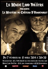 Lorsque la famille d’Hoogvorst décida de bâtir un château et de donner son nom à cette étrange ruelle de Schaerbeek, ignorée aujourd’hui encore de certains GPS, elle était loin d’imaginer ce qui l’attendait. C’est au cours des travaux de constructions que les architectes firent une incroyable découverte, une faille temporelle permettant de voyager dans l’espace et le temps. Il fallait à tout prix dissimuler ce secret qui aurait pu bouleverser l’équilibre du monde. C’est pourquoi, on n’hésita pas à faire couler les ouvriers dans le ciment, l’architecte dans le bronze et on mura les portes du château. Deux siècles plus tard, Herman d’Hoogvorst, contre l’avis de la famille reprit possession des lieux et continua ses recherches sur la quatrième dimension. Il travaillait sur une fabuleuse machine à voyager dans le temps lorsque pour son plus grand malheir, il accepta de partager son laboratoire avec Sacha Schnitzel, un généticien allemand, dont le seul but était de devenir le maître du monde. Ce dernier mit tout en oeuvre pour se débarrasser d’Herman d’Hoogvorst et il y serait parvenu sans doutes sans La Malédiction de Liège. Avec : Daniel Cap, Christelle Delbrouck, Philippe Drecq, Camille Henrard, Thomas LInckx, Bénédicte Philippon et John-John Mossoux Texte et mise en scène : Patrick Chaboud Assité par Sophie Jallet Création Lumière : François N Création Sonore : HUghes Maréchal Décors et Costumes : Tristan Locus, Yves Goedseels, Isis Hauben et Aline Claus Adulte : 18 € Enfant/étudiant : 15 € Groupe (min 15 pers) : 15 € Article 27 : 1,25 € Réservation : 02/245.50.64 ou www.magicland-theatre.com