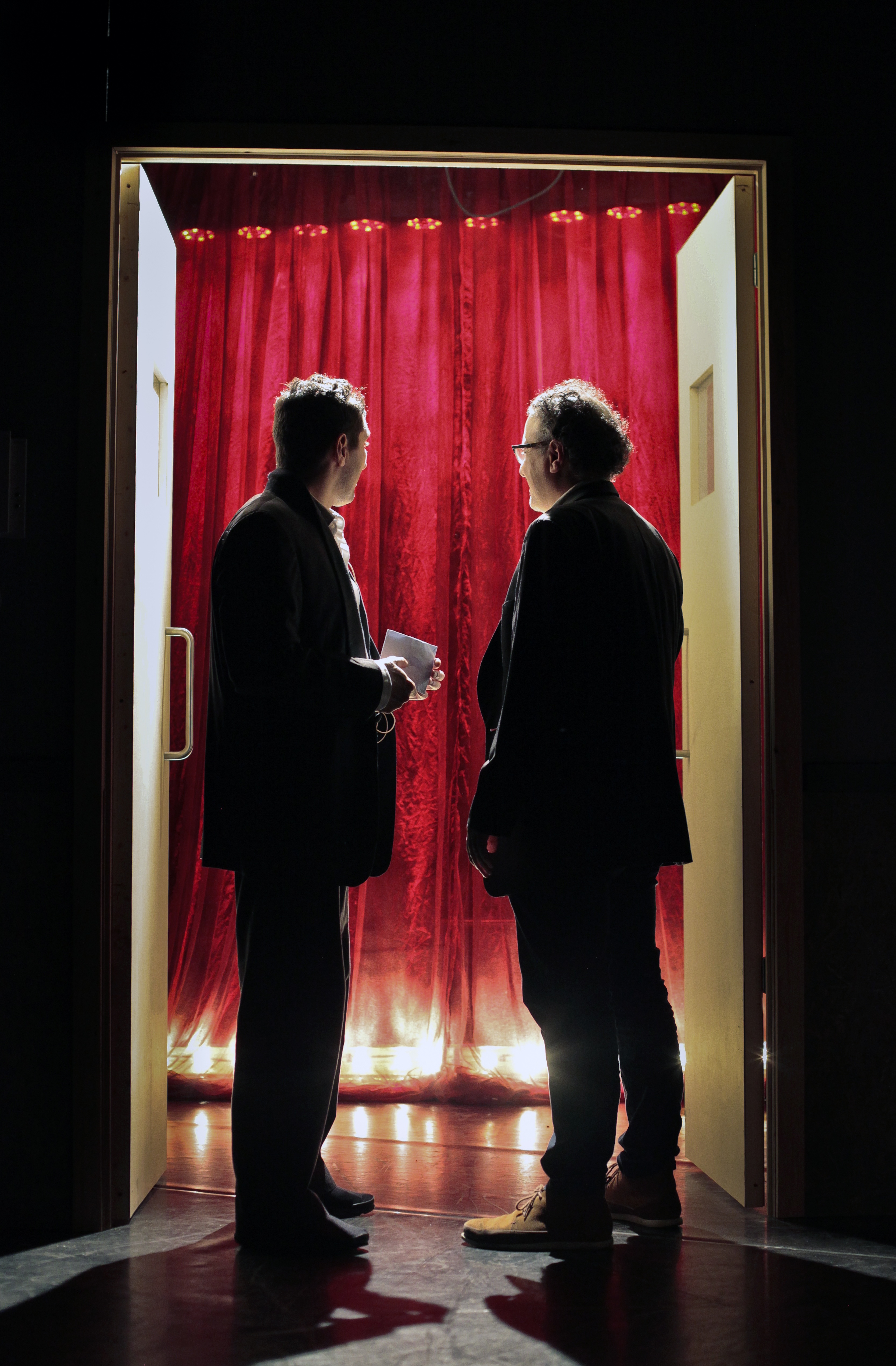Dans la salle de spectacle de l’espace Magh, le rideau se lève sur la salle de répétition d’un théâtre dont la salle de spectacle se trouverait derrières les portes qu’on aperçoit en fond de scène. On voit y apparaître l’esprit des lieux, le concierge Nordine, prêt à partir en vacances pour « rentrer au bled ». Cependant, rien ne va se passer comme prévu, puisque pour une raison qui ne nous est révélée qu’au fur et à mesure du spectacle, celui-ci subit un chantage de la part du directeur du théâtre, celui de renoncer à ses vacances s’il veut éviter qu’on dépose une plainte contre lui. Cerise sur le gâteau, Pierre, un artiste en résidence, pure incarnation du comédien bourgeoisie-bohème arrive pour s’installer au théâtre et y passer l’été, au plus grand désespoir de Nordine. Le comique naît de cette situation de huis clos où les deux personnages, diamétralement opposés, l’un belge mais lié au Maroc et empreint de convictions conservatrices, l’autre homosexuel, libéré et donneur de leçons s’éprouvent l’un l’autre et finissent par travailler ensemble à la réalisation d’un spectacle. Mais le spectateur est pris de court au fur et à mesure par les multiples sous-couches de cette comédie. Progressivement, on comprend que Pierre est venu car Nordine est son demi-frère, et qu’il est le fruit des aventures domjuanesques du père de Nordine. On comprend aussi que les dégâts causés par Nordine dont l’accuse le directeur au début du spectacle consistent en la castration des statues de style antique du théâtre, en réalité opérée par son fils, par dégoût d’un milieu religieux et conservateur par lequel il est opprimé pour avoir osé dire sa pensée.