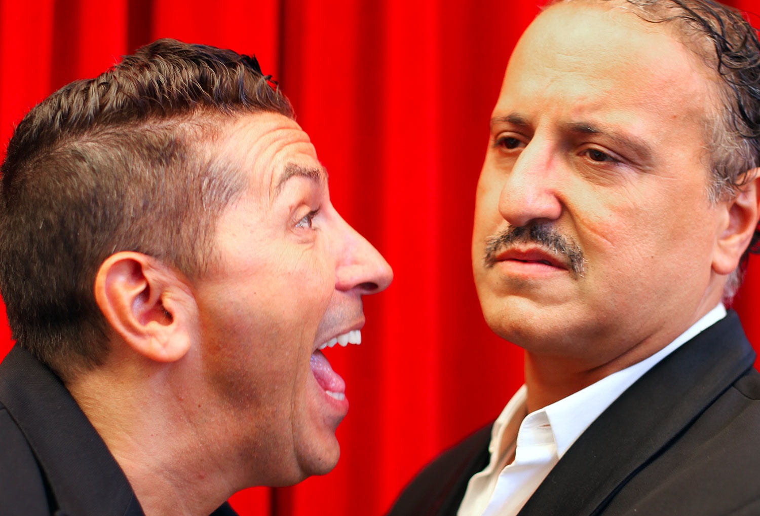 Dans la salle de spectacle de l’espace Magh, le rideau se lève sur la salle de répétition d’un théâtre dont la salle de spectacle se trouverait derrières les portes qu’on aperçoit en fond de scène. On voit y apparaître l’esprit des lieux, le concierge Nordine, prêt à partir en vacances pour « rentrer au bled ». Cependant, rien ne va se passer comme prévu, puisque pour une raison qui ne nous est révélée qu’au fur et à mesure du spectacle, celui-ci subit un chantage de la part du directeur du théâtre, celui de renoncer à ses vacances s’il veut éviter qu’on dépose une plainte contre lui. Cerise sur le gâteau, Pierre, un artiste en résidence, pure incarnation du comédien bourgeoisie-bohème arrive pour s’installer au théâtre et y passer l’été, au plus grand désespoir de Nordine. Le comique naît de cette situation de huis clos où les deux personnages, diamétralement opposés, l’un belge mais lié au Maroc et empreint de convictions conservatrices, l’autre homosexuel, libéré et donneur de leçons s’éprouvent l’un l’autre et finissent par travailler ensemble à la réalisation d’un spectacle. Mais le spectateur est pris de court au fur et à mesure par les multiples sous-couches de cette comédie. Progressivement, on comprend que Pierre est venu car Nordine est son demi-frère, et qu’il est le fruit des aventures domjuanesques du père de Nordine. On comprend aussi que les dégâts causés par Nordine dont l’accuse le directeur au début du spectacle consistent en la castration des statues de style antique du théâtre, en réalité opérée par son fils, par dégoût d’un milieu religieux et conservateur par lequel il est opprimé pour avoir osé dire sa pensée.