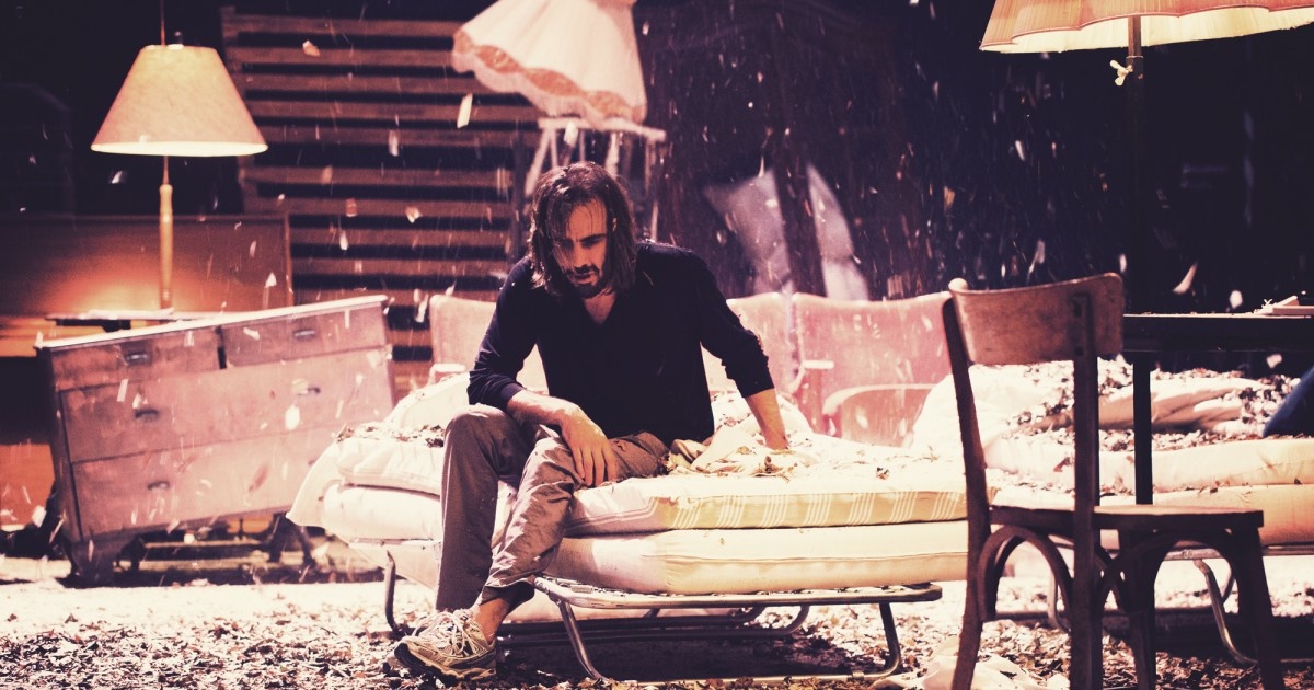 Musicienne, formée au jeu d’acteur, Séverine Chavrier, réussit une mise en scène où la scénographie et les images filmées renvoient aux paysages tourmentés du roman. Sable, feuilles mortes et vent balaient la scène. Le tumulte intérieur de ces amants aux rôles inversés (Charlotte résolument masculine dans sa façon de mener le couple vers l’absolu alors que Harry, indolent, peine à trouver son identité) se réverbère dans le chaos de matelas, de caisses, de meubles boiteux qui encombrent leurs logis de fortune successifs. L’échafaudage de boîtes de conserve dont ils se nourrissent ne résistera pas plus que leur amour à la tourmente et à la précarité de leur existence.