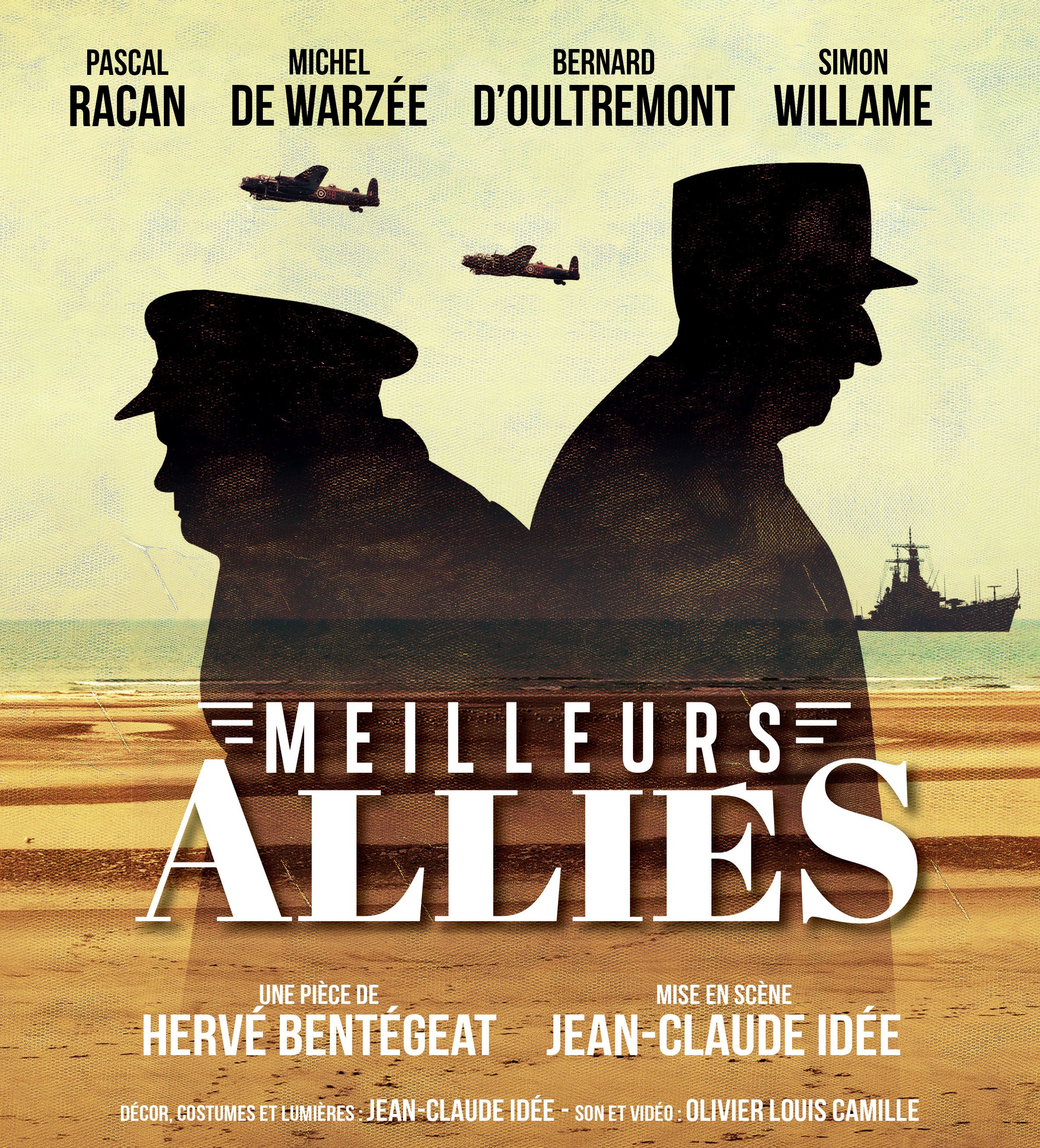 " MEILLEURS ALLIÉS ", la pièce en trois actes d’Hervé Bentégeat, met en scène la rencontre orageuse de Charles de Gaulle, auréolé par son vibrant appel du 18 juin à Londres en 1940, mais convoqué par Winston Churchill le 4 juin 1944, à deux jours du D Day pour qu’il se soumette au diktat anglo-saxon. De Gaulle enrage car la France Libre a été écartée de la plus grosse opération militaire de tous les temps. Il y a derrière, un certain Eisenhower, qui ne supporte pas le français, tout comme le président américain Franklin Roosevelt qui éprouvait une haine pathologique envers le très lucide général Charles de Gaulle, convaincu que les américains avaient l’intention de réduire la France à un protectorat et à des liens de vassalité. Ce sera seulement après la libération de Paris par les troupes françaises, que Roosevelt réalisera combien le général pourra contrer « la menace communiste » en France ! De Gaulle rêve d’une Europe forte, avec ou sans l’Angleterre, pour contrer l’Amérique et le bloc communiste.
