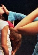 C’est sur la notion moins romantique et sensuelle que pratique, d’emboitement, qu’elle a travaillé avec ses danseurs, combinant les possibilités de façon aléatoire. 32 thèmes, 4 hommes, 3 femmes, et une combinatoire multiple.