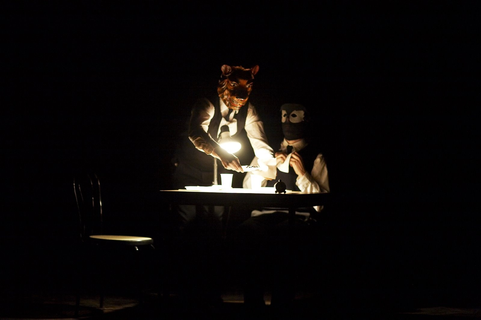 Parabole sur l’amitié et la fonction sociale du comédien, cette performance extravagante se joue des codes du théâtre. De Don Quichotte à La Mouette, de John Zorn à Serge Lama, du théâtre masqué au mime, de l’absurde au pathos, les deux interprètes s’évertuent à inventer des stratagèmes les plus alambiqués pour nous mener en bateau et, grâce à un humour féroce, nous prendre à revers. On finit d’ailleurs par se demander si, au bout du compte, il y a bien deux comédiens face à nous, ou s’il s’agit des deux facettes d’un même personnage schizophrénique.