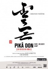 Toute en sobriété, la mise en scène (assistée par Léonore Frenois) donne néanmoins un cadre créatif au jeu des comédiens, qui alternent chœurs, monologues, jeux corporels. La scénographie d’Hélène Kufferath est emprunte d’une esthétique épurée mais juste, qui nous plonge dans des images fortes. L’ombre du nuage atomique retombant sur le sol, aux contours de la carte géographique du Japon, est dramatiquement belle, la scène d’une fête où coule le champagne en papier de soie noire, est horriblement efficace. Mis à part quelques longueurs et niveaux de jeu des comédiens par moments différents, Pika Don est un projet dont Alex Lorette a abouti ce qu’il voulait en dire et en montrer.