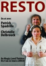 Le restaurant. Un lieu de rendez-vous. Un lieu de rencontre. Un lieu unique où se tissent des liens, se croisent des destins, se séparent des chemins. C’est sur ce lieu que Christelle Delbrouck et Patrick Spadrille ont jeté leur dévolu pour nous plonger dans leur univers. Au menu, la diversité des styles. L’absurde, la tragédie, la comédie dramatique, la poésie, le burlesque,… L’humanité à toutes les sauces. Visionnez la bande annonce sur : www.resto-lespectacle.be De et par Patrick Spadrille et Christelle DelbrouckMise en scène de Gilles DelvauxLumières de Didier SchokkaertAdulte : 15 €Enfant/étudiant : 10 €Groupe (min 15 pers) : 10 €Article 27 : 1,25 € Réservations : 02/245.50.64 ouwww.magicland-theatre.com