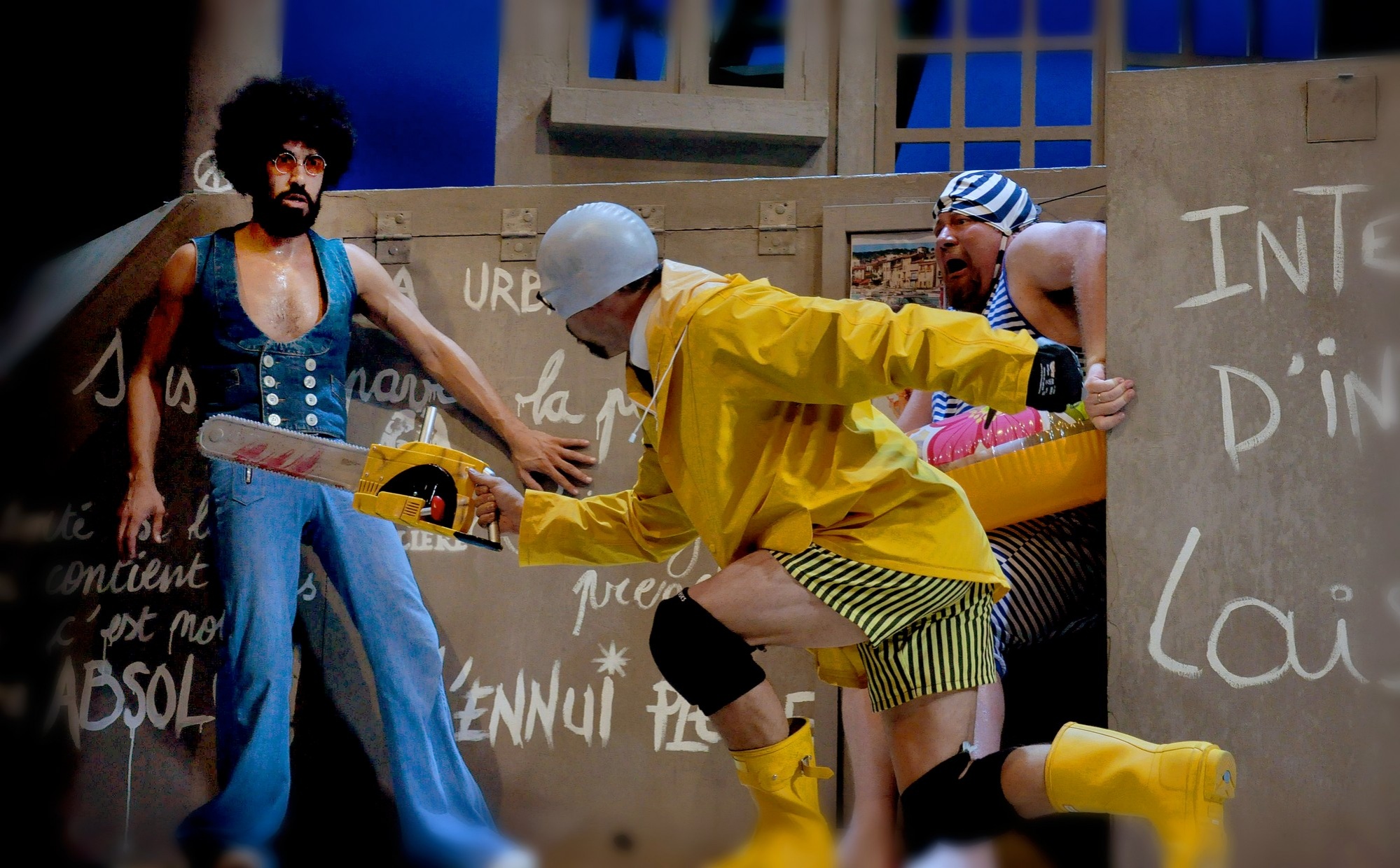 Tout s’enchaîne dans un délire de trouvailles autour des serviettes et fauteuils de plage, jeu de boules en plastique, bouées, costumes et bonnets de bain rétro, sans oublier, au large, …la fameuse galère. La musculature parfaite et la souplesse de chat frémissant d’Othmane Moumen, beau comme un plagiste, qui voltige de balcons en réverbères et autres escarpolettes, a déteint sur tous les comédiens qui eux aussi, sautent, rebondissent, jaillissent de trappes improbables et mènent un jeu d’enfer délirant autour du texte, comme si tous avaient fumé la moquette et siroté des breuvages multicolores ! Et quand une inénarrable scène de rire inextinguible s’empare de Laure Gaudisiabois et de Benoit Van Dorselaer, la salle ne se tient plus. On est dans un sommet de l’excellence théâtrale où le corps est roi et on applaudirait bien en cours de route, comme à l’opéra ! Car d’ailleurs de la musique - des tubes anglo-saxons absolument légendaires - il y en a … avant, pendant et après, mais on n’en dira pas plus, car franchement, on ne peut manquer un tel spectacle auquel, on ose attribuer 5 étoiles, tant c’est bien fait, vivant, inédit et décoiffant. Quant à la morale « Il est interdit d’interdire » : on adore, pas vous ?