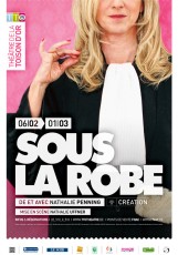 Nathalie Penning est une étrange créature. Supposée faire un des métiers les plus sérieux du monde, à 5 ans déjà, elle chantait « Rikita Fleur de Java » de Georgette Plana, debout sur la table de la cuisine. Magnifique référence ! Depuis, elle ne rate pas l’occasion, entre deux plaidoiries, de remonter sur les planches. « Sous la robe », le titre est clair, Nathalie va nous faire rire de, et avec, son métier d’avocat. Vous n’aurez aucun nom (le Bâtonnier lui donnerait du bâton), mais une vision assez particulière de ceux qui ne parlent qu’en présence de leur avocat. Et à la fin, c’est le rire qui gagne le procès.