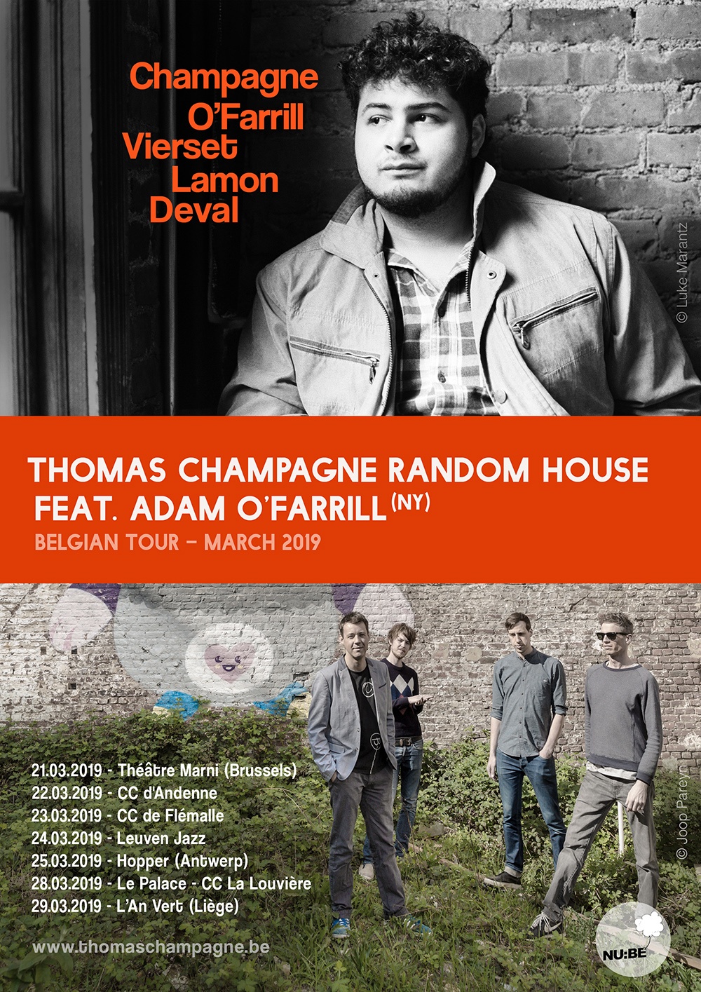 Thomas Champagne (sax) ; Adam O’Farrill (trompette) ; Guillaume Vierset (guitare) ; Ruben Lamon (contrebasse) ; Alain Deval (batterie)