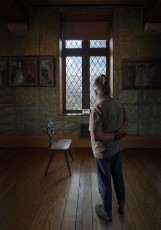 Au milieu de la grande scène de la balsamine, un petit castelet aux parois peintes. A l’intérieur de celui-ci, une vieille femme trône dans un grand fauteuil blanc. Avec sa robe fleurie, elle évoque une poupée dans sa maison. Des deux côtés de cette scène sur la scène, des verres à pied. A jardin, une grande table recouverte d’un service de vaisselle familiale. Image de l’attente dans un intérieur flamand, brusquement brisée par la voix gutturale de la mère morte. Voix adressant des mots à la fille, mots placés par la fille dans la bouche de la mère. Commentaires de la cérémonie d’enterrement qui se déroule, étape par étape. Reproches adressés à la fille qui ne convient pas, mots qui blessent et qui accablent. Mais aussi et surtout mots d’amour. Non pour la fille mais pour le père, ce céleste acrobate dont la présence a donné un sens à la vie maintenant terminée.