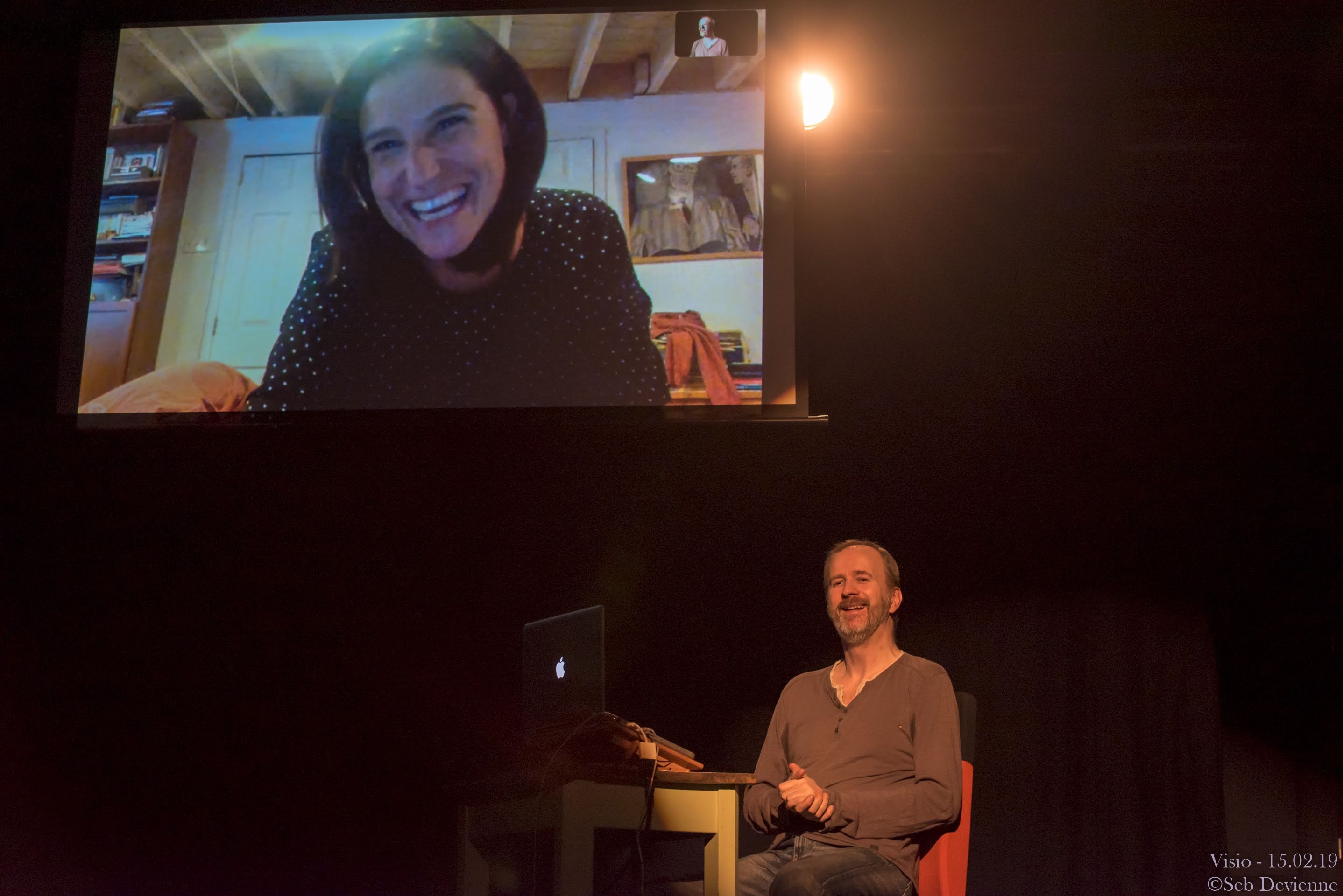Patrick Spadrille est seul en scène, son ou sa partenaire est à l’écran. En utilisant une application de visioconférence (Skype, Facetime…) ce.tte partenaire peut être à n’importe quel endroit de la planète et dans n’importe quel type de lieu : un marché, une forêt, sa salle de bains, en rue, en voiture,… ou une combinaison de tout cela.