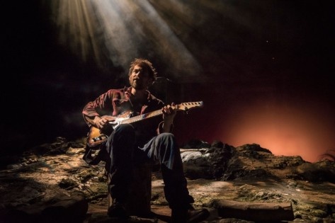 Une mise en scène qui nous force à quitter, le temps d’une pièce qui n’a rien de romantique, le bruit assourdissant et le béton froid de nos villes. Pour se confronter, comme ce personnage seul en scène, enchaînant récits de vie et morceaux de guitare originaux, à la beauté pure, mais aussi à la violence extrême, des forêts, des rivages et des déserts, où règnent à la fois l’équilibre et le chaos.